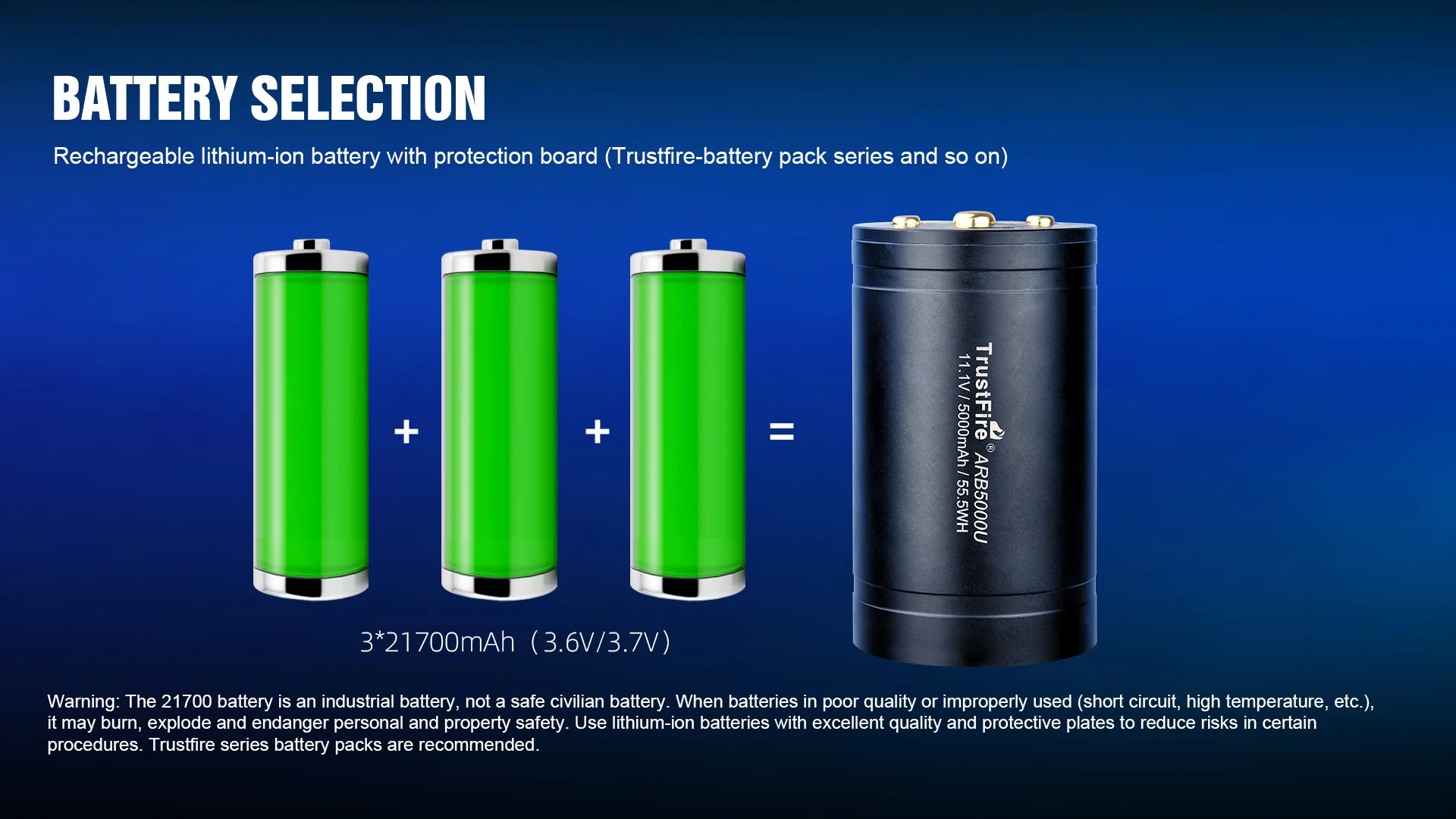5-Using 3pcs 21700 3.7V 5000mAh customized rechargeable battery pack.
