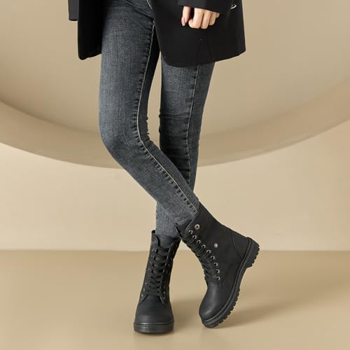 TUOPIN Women Fashion Ankle Boots, PU Waterproof Women’s Combat Boots, Fleecing …