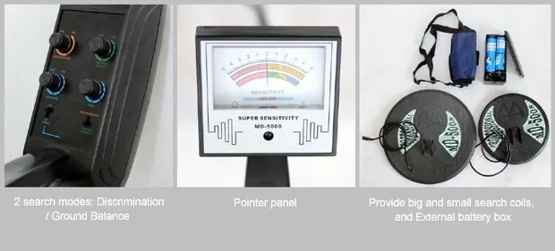 MD-5008 metal detectors, 3-3.5m depth of detection, adopt advanced technique and attach high quality components which have features of ground balance, good discrimination ability, wide detection range, accurate orientation, strong resolution and easy operation.