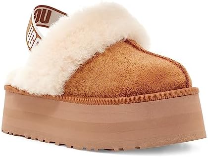 The Funkette evolves our iconic Coquette Slipper, updating its design with layered platform soles for a funky, retro-style statement. Keeping the same slip-on silhouette and soft sheepskin lining as the original, we add a graphic UGG logo backstrap to help secure your foot. Pair with dark denim and a striped top.