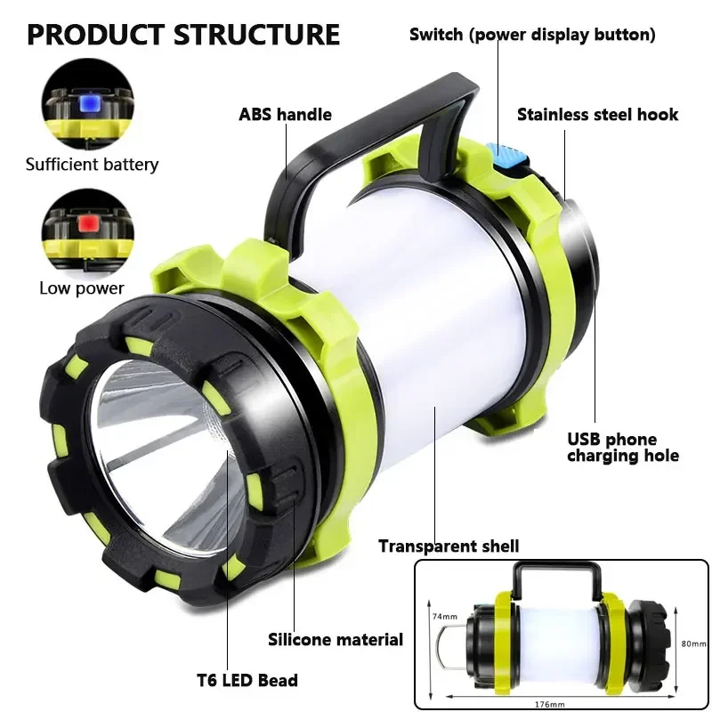 Rechargeable Power Bank – Built-in 2600mAh rechargeable battery allows you to charge the lantern without spending money on batteries. It can also work as a portable power bank to charge your devices. The blue indicator lights on the button will show the battery life
