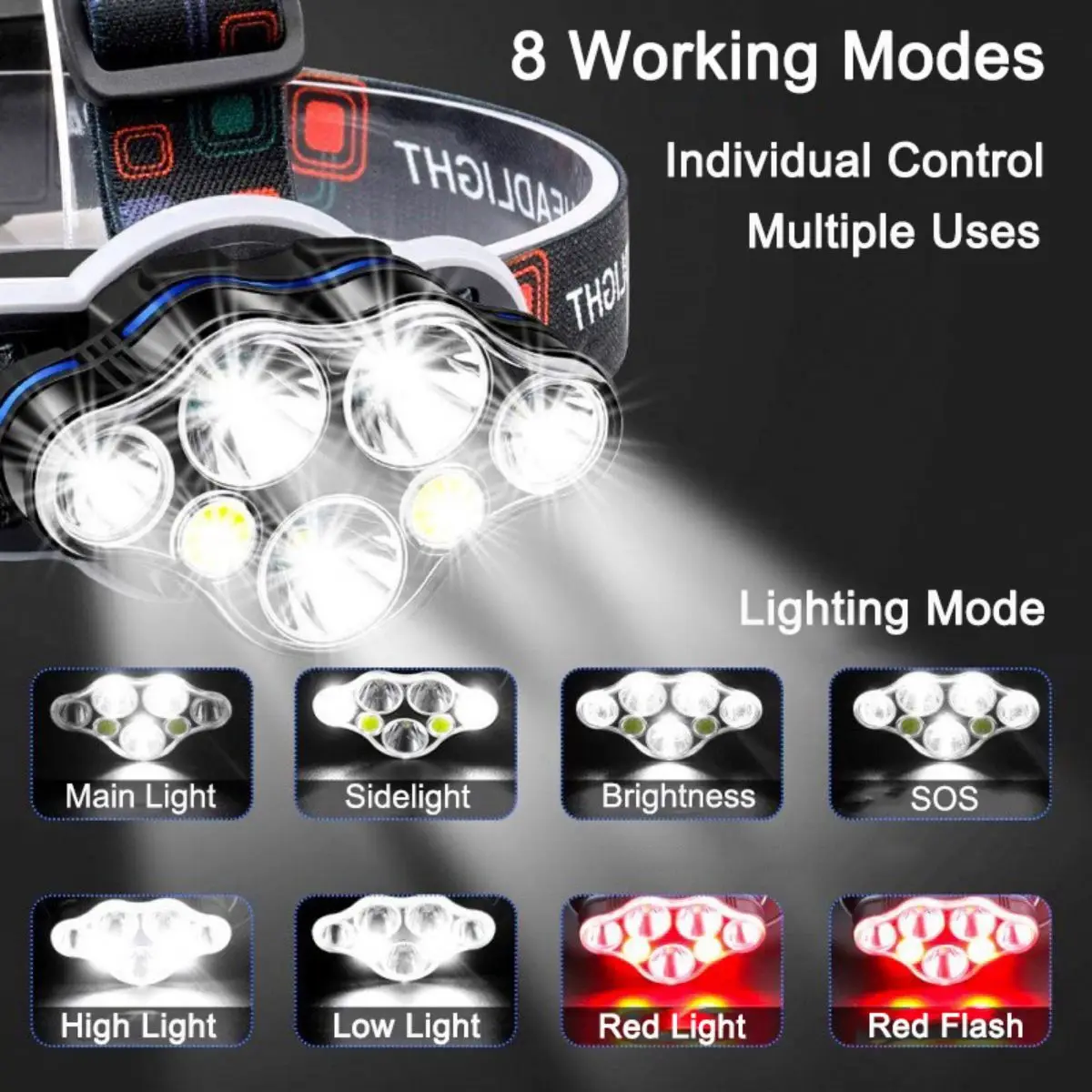 With its array of lighting modes, the UltraFire K07 ensures that you're never left in the dark. Whether you need a focused beam or broader illumination, this headlamp has you covered. From middle LED bright to both sides LED bright, and from flashing modes to COB white and red light options, you'll always have the perfect lighting solution at your fingertips.