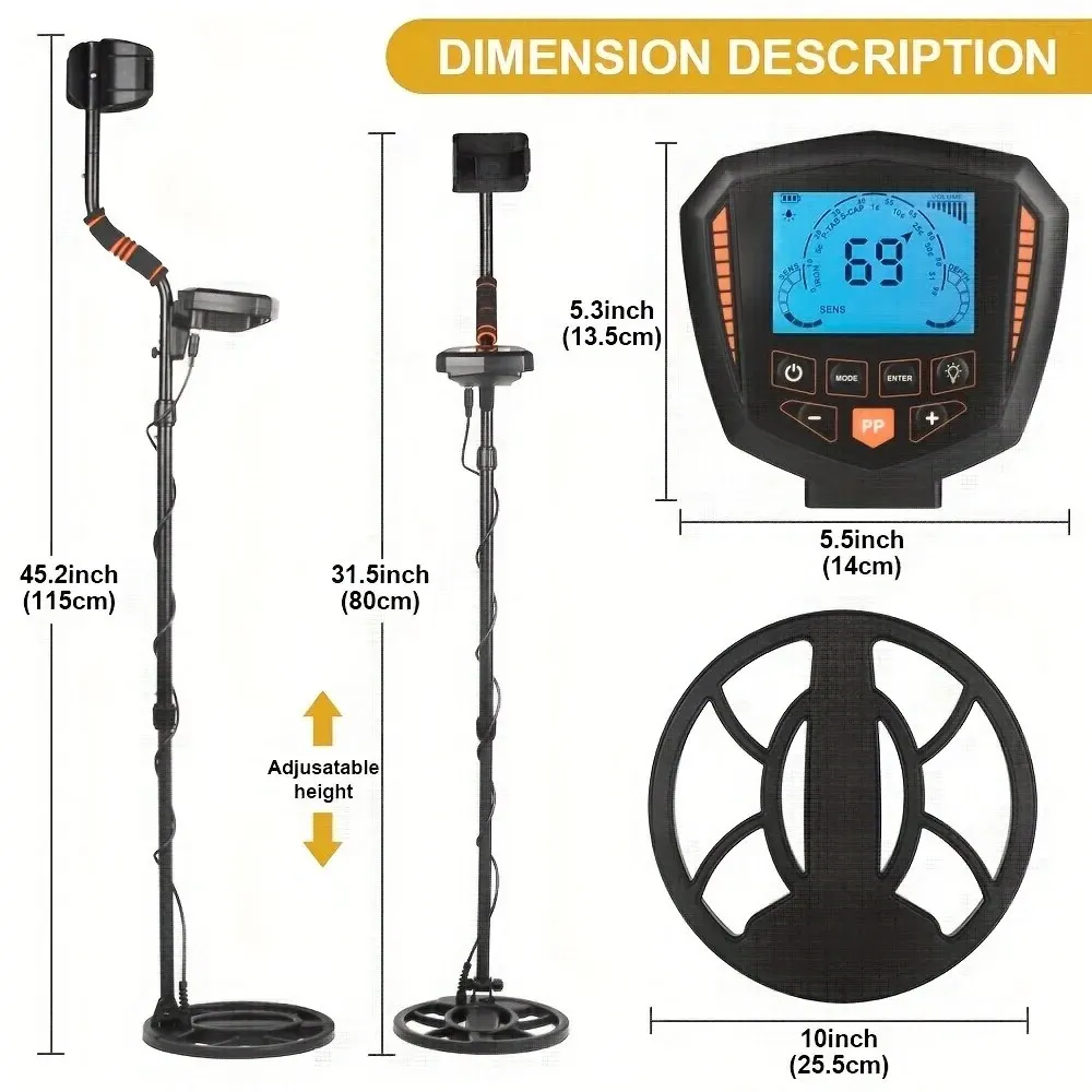 [Advanced DSP chip] This gold metal detector is upgraded with a DSP chip, providing higher sensitivity, more accurate anti-jamming capability (ground balance function), higher sensitivity, wider search range, and detection depth of up to 10 inches (about 25.4 cm).