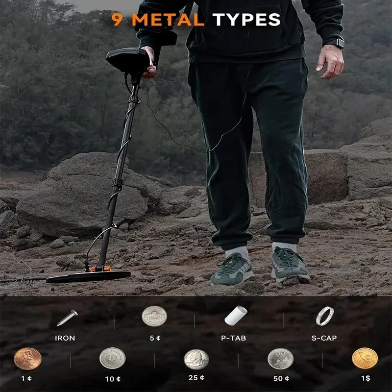 [9 Metal Samples &5 Modes] Adult Metal detectors come with 9 metal samples and 5 metal detection modes, allowing you to efficiently search for the metals you need. Full metal mode, disc mode, slot mode, volume mode, pin.