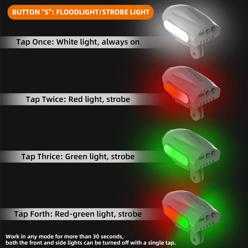 Integrated with long-range, floodlighting, burst, and SOS functions. Front mounted long-range searchlights, side white floodlights, and red and green flashing lights, suitable for different scene needs.