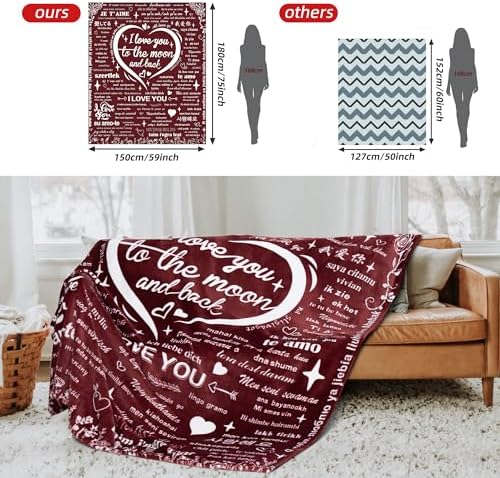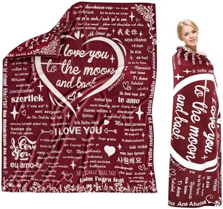 How much do you love me?:I love you to the moon and back—beautiful heartfelt word surround with love shapes,which is the most touching answer. Can be as personalized unique gifts for women who has everything,gifts for mom from daughter son who has everything ,anniversary gifts for her,gifts for wife,mom gifts on Christmas birthday mothers day valentines day, Use our blanket text to show how much you love her.
