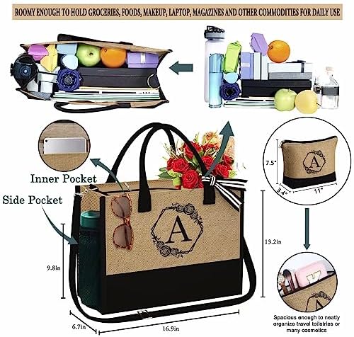 Valentines Day Gifts – Initial Jute Tote Bag & Makeup Bag Personalized Mot …