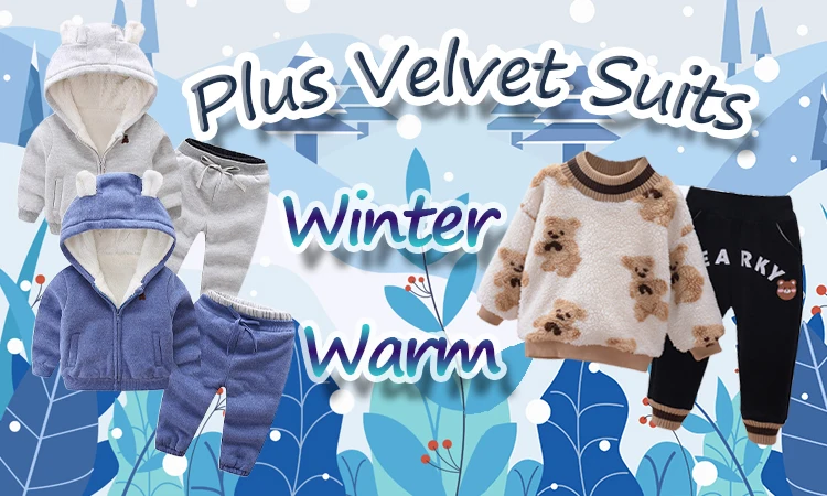 Warm Baby Girls Clothing Set Winter Thick Plush Cotton Clothing Sets For Baby Girls Hoodies And Pants Kids Suit Children Clothes