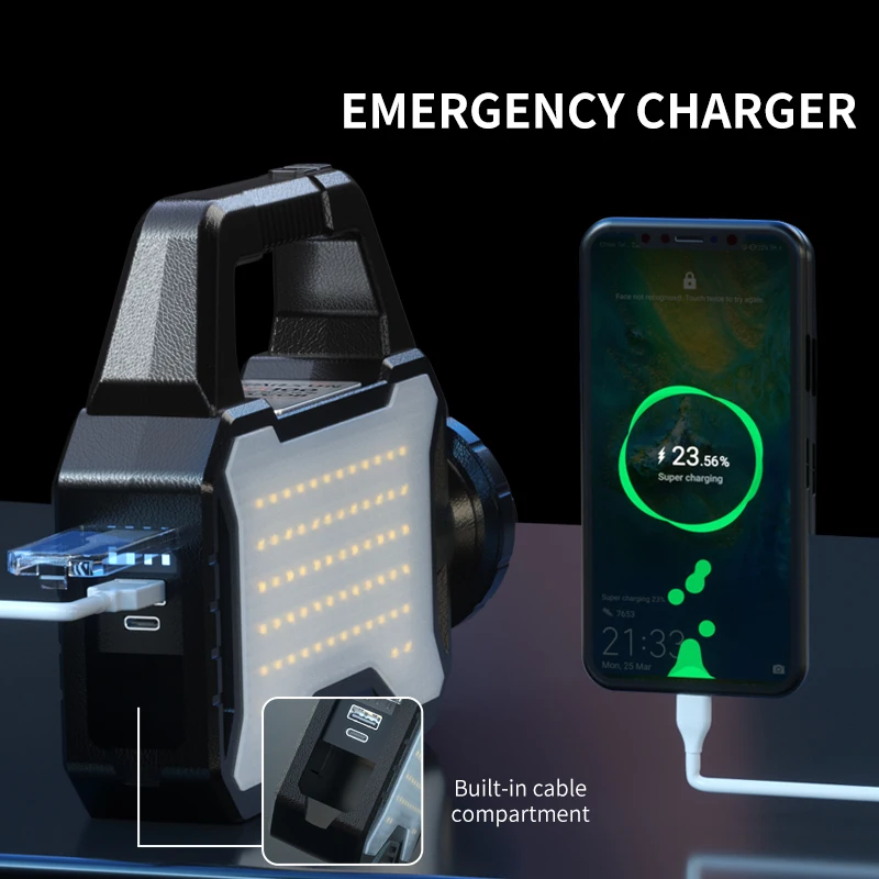Warsun Multifunctional Searchlight Outdoor Waterproof Solar Powered Charging Bank Str …