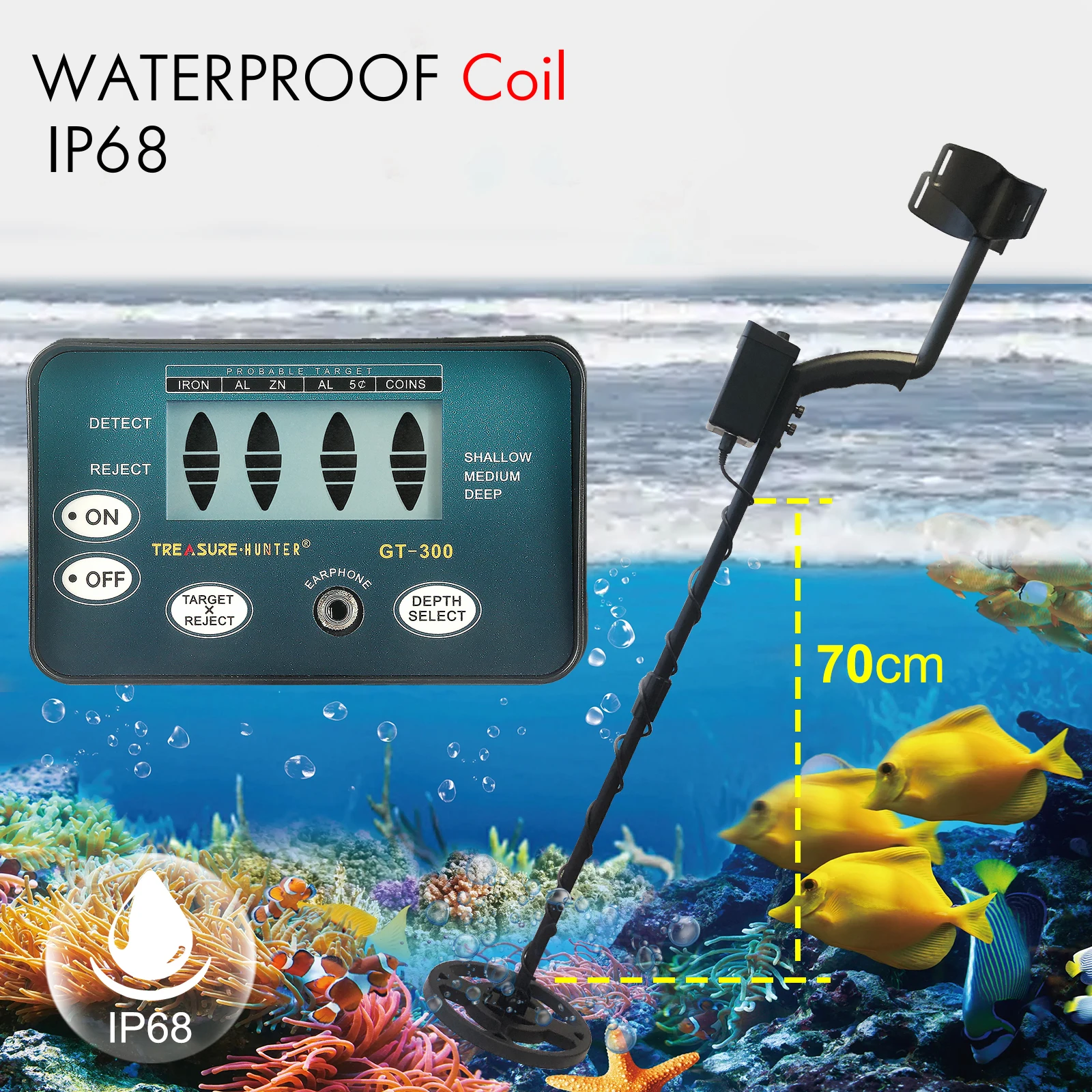 With this metal detector, you can hunt for coins, relics, jewelry, gold, and silver just about anywhere, including lawns, snows, mountains and etc.