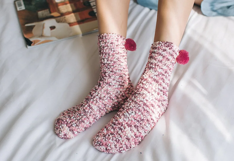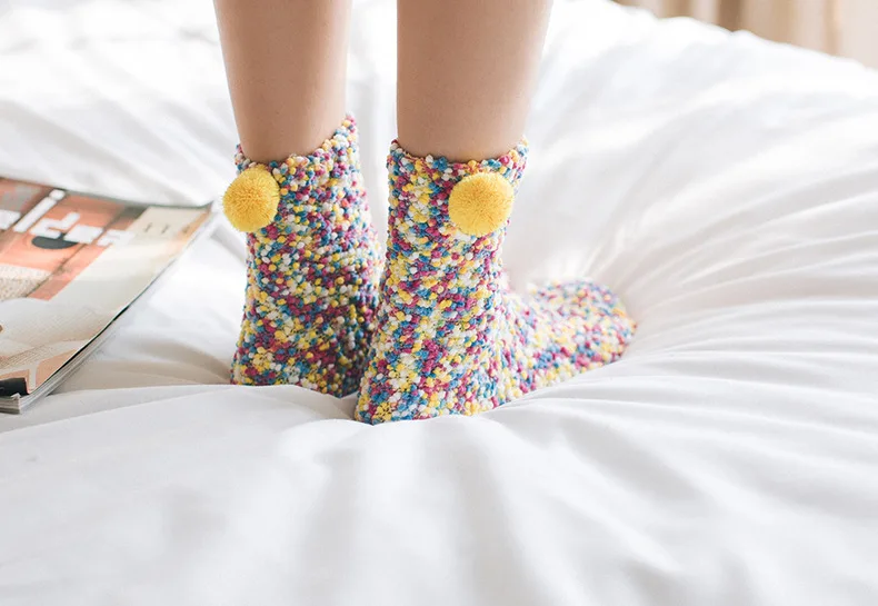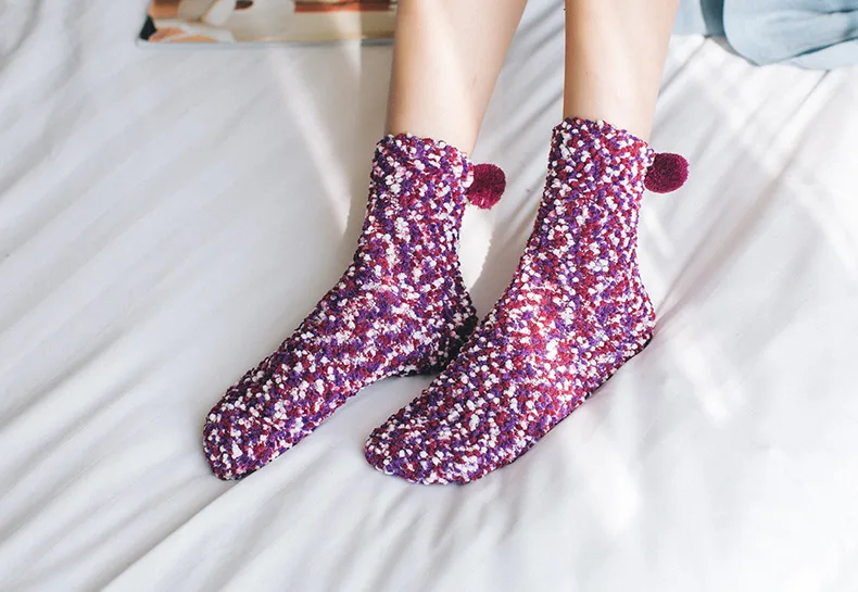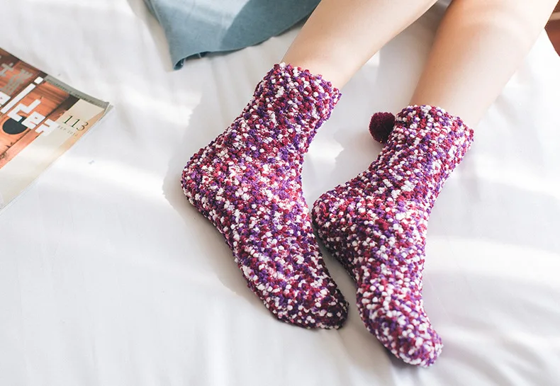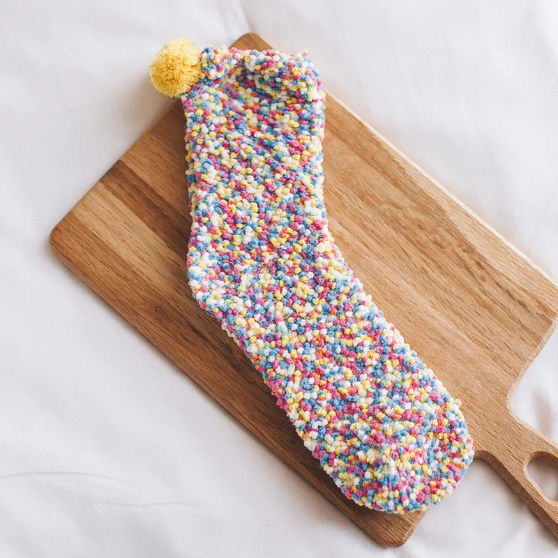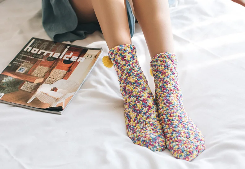 Women Candy Colors Winter Warm Fluffy Socks Casual Home Floor Sleeping Thick Fuzzy Socks Christmas Gift Coral Velvet Cake Socks