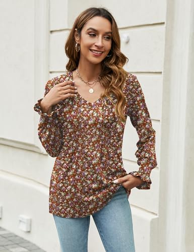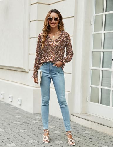 Womens Blouses Long Sleeve V Neck Business Work Shirts Dressy Casual Spring Boho Tops