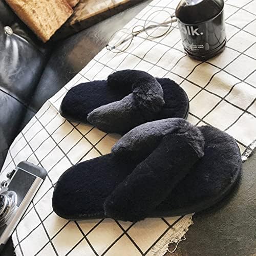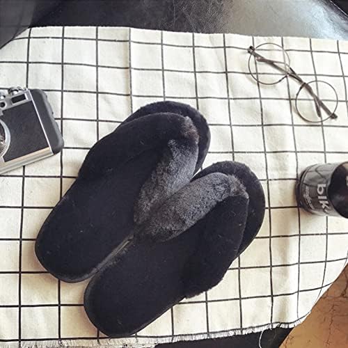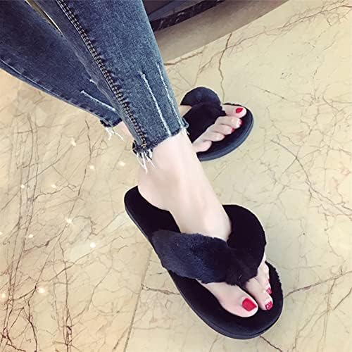 Womens Faux Fur Slippers Warm Fussy Flip Flop House Slippers Open Toe Home Slippers f …