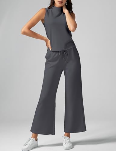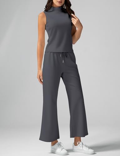 Women’s Summer 2 Piece Outfits Mock Neck Tank Top Cropped Wide Leg Pants Lounge …