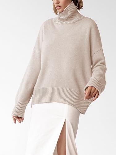 Women’s Turtleneck Sweater Chunky Long Sleeve Knitted Pullover High Low Hem Tre …