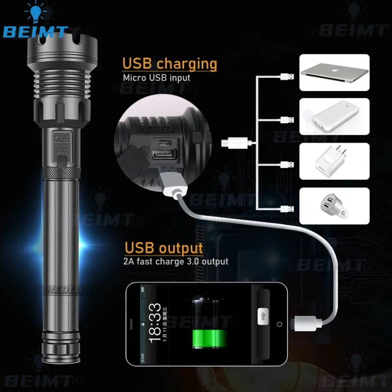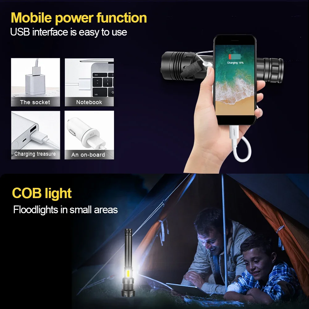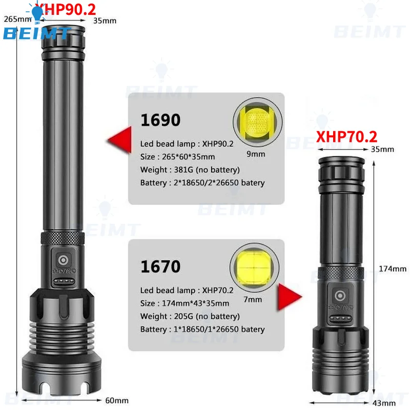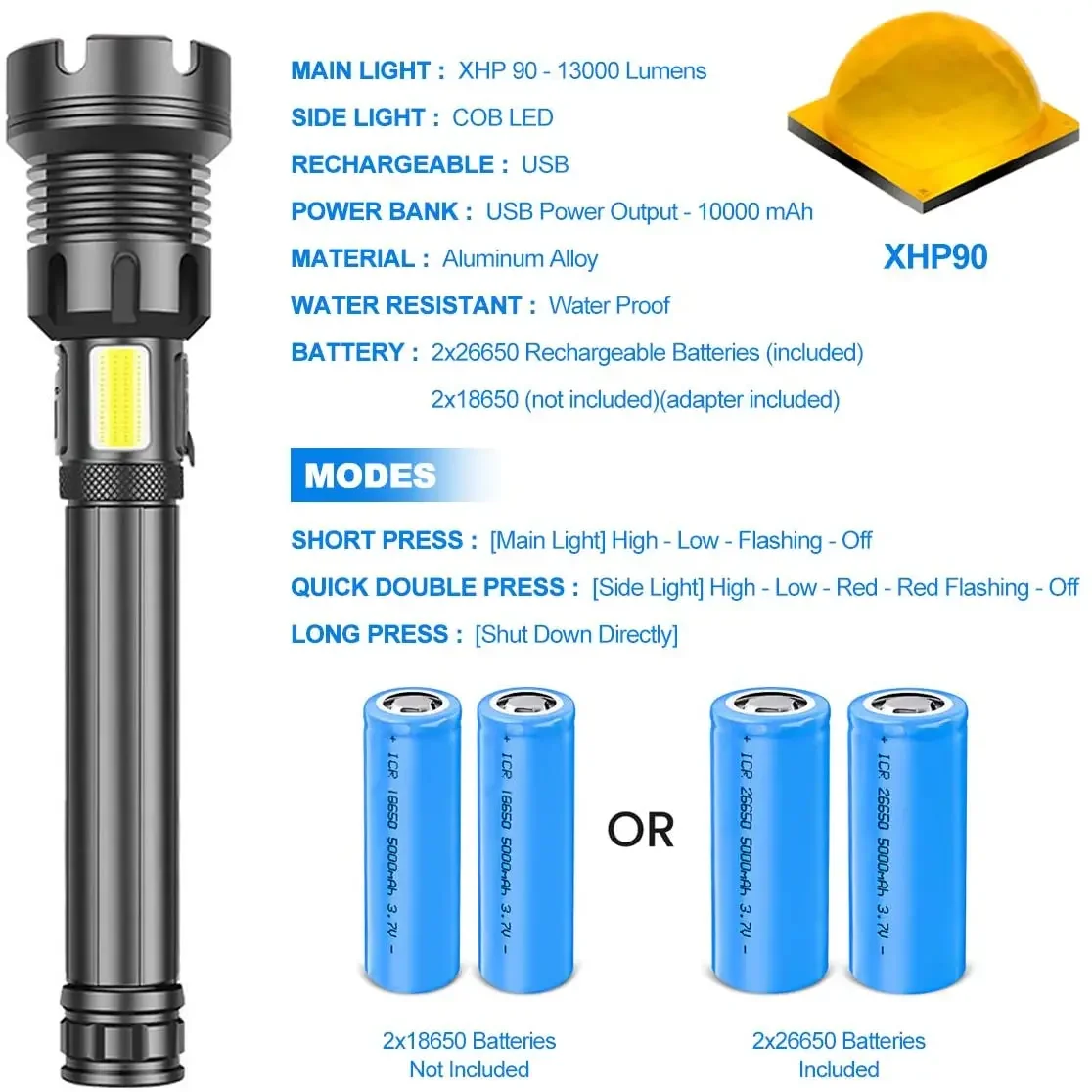 XHP160/90 99000LM Powerful LED Flashlights Super Bright Flash Lights USB Rechargeable …