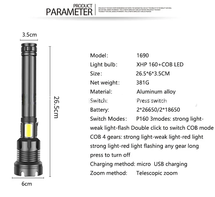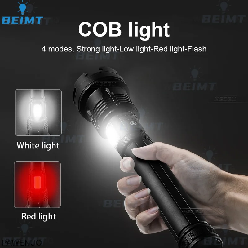 Features: High lumen P160+low beam COB red and white light, with rich functions, suitable for outdoor use