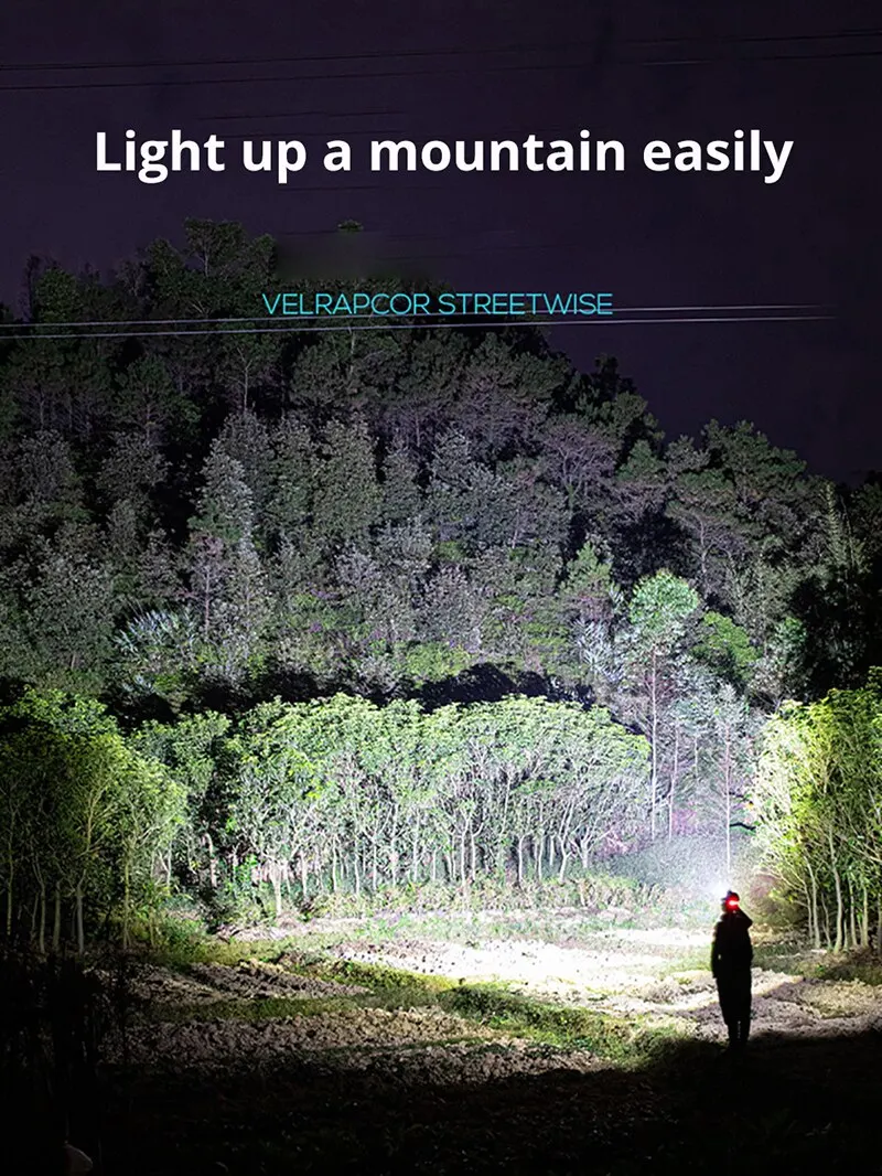 1.Using 4-core XHP50 lamp beads, the maximum lumen output can reach 2300 lumens, and the maximum lighting distance can reach 500 meters. It can easily illuminate a building and is your best choice for outdoor adventures.