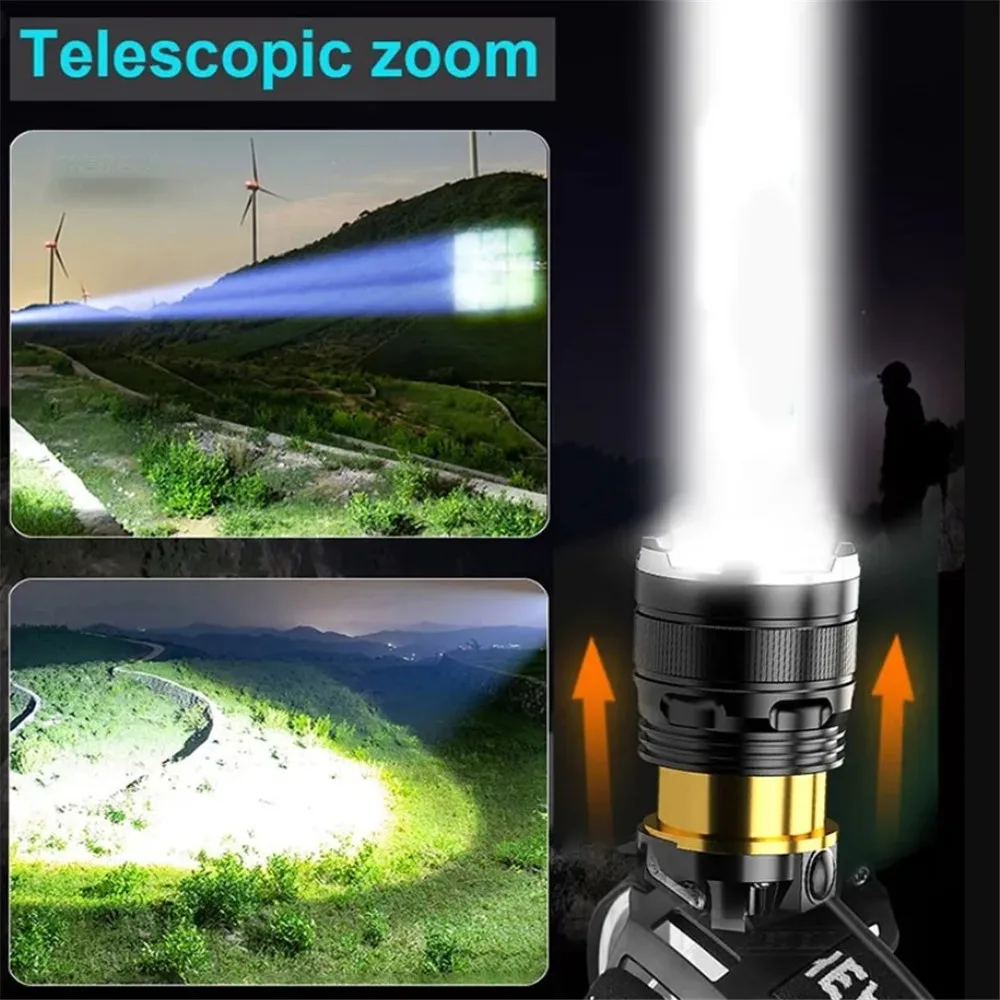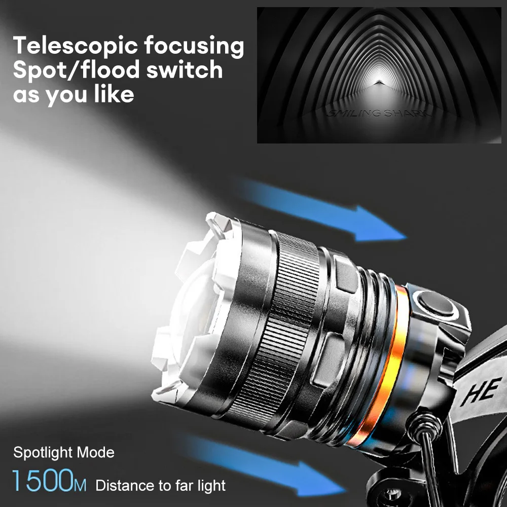 1. Using 4-core XHP50 lamp beads, the maximum lumen output can reach 2300 lumens, and the maximum lighting distance can reach 500 meters. It can easily illuminate buildings and is the best choice for outdoor adventures.