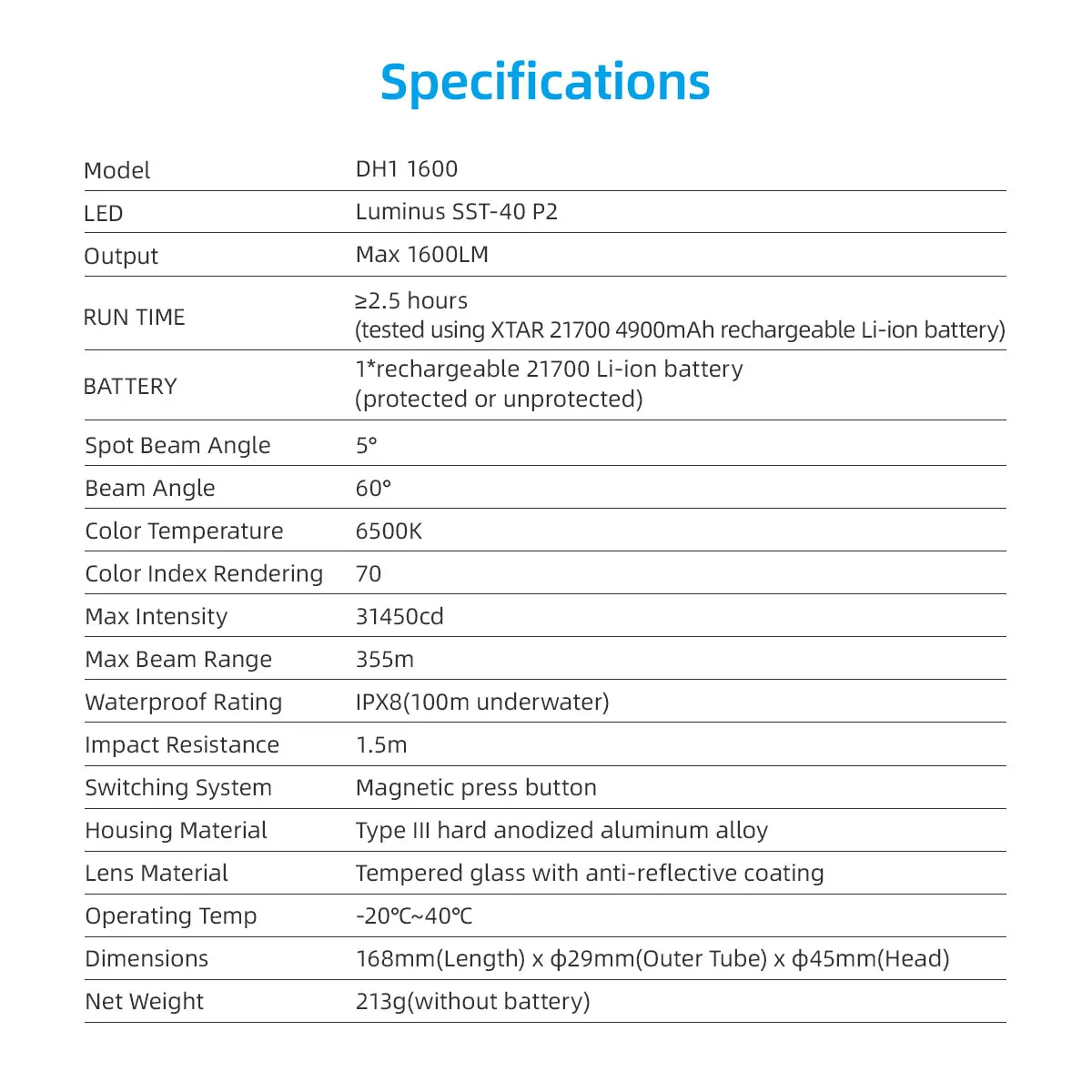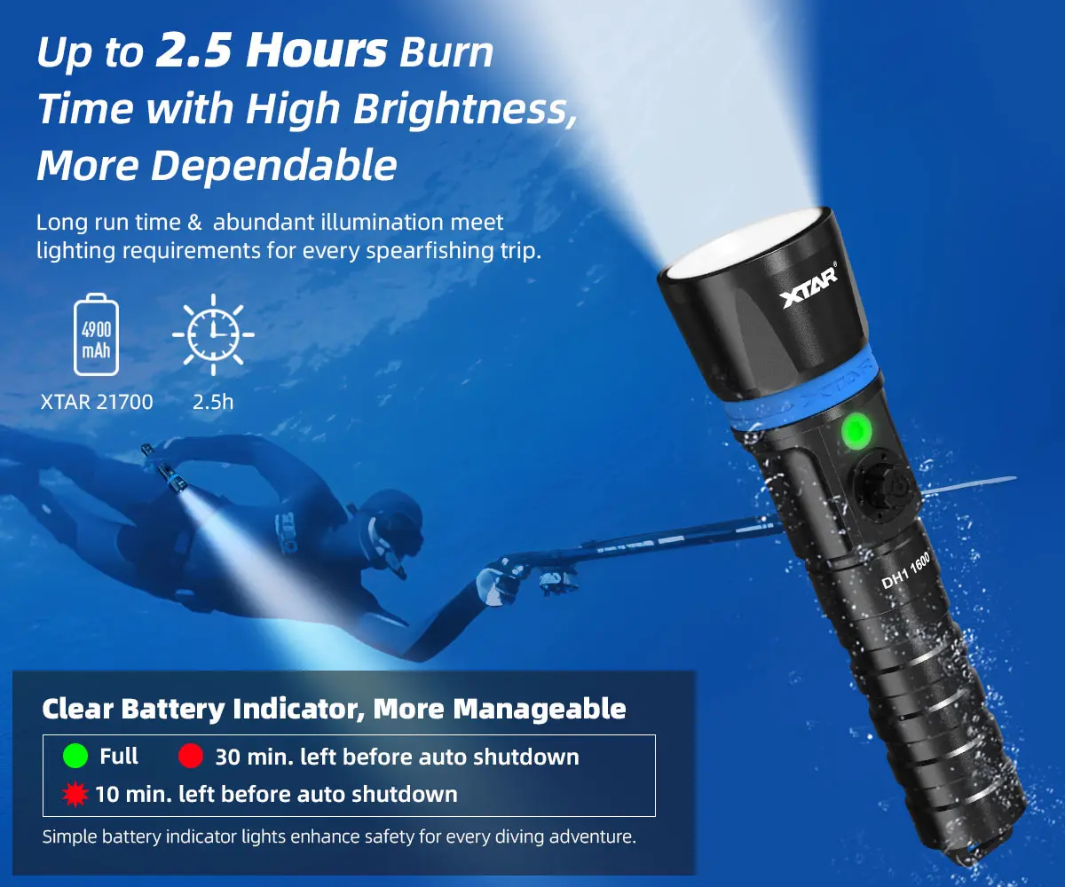 XTAR DH1 1600 Flashlight LED Dive Torch High Lumen Spearfishing Flashlight Single Swi …