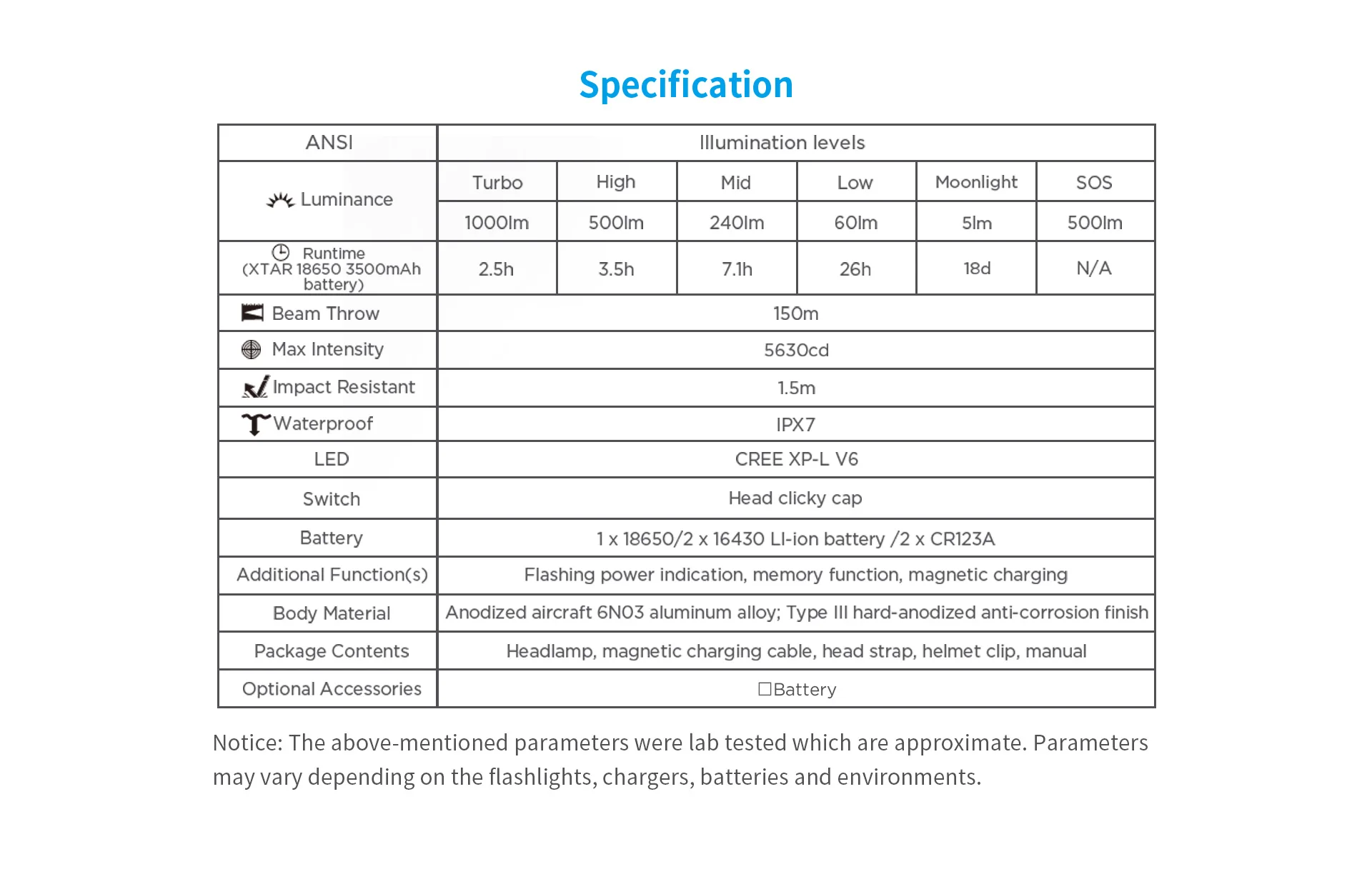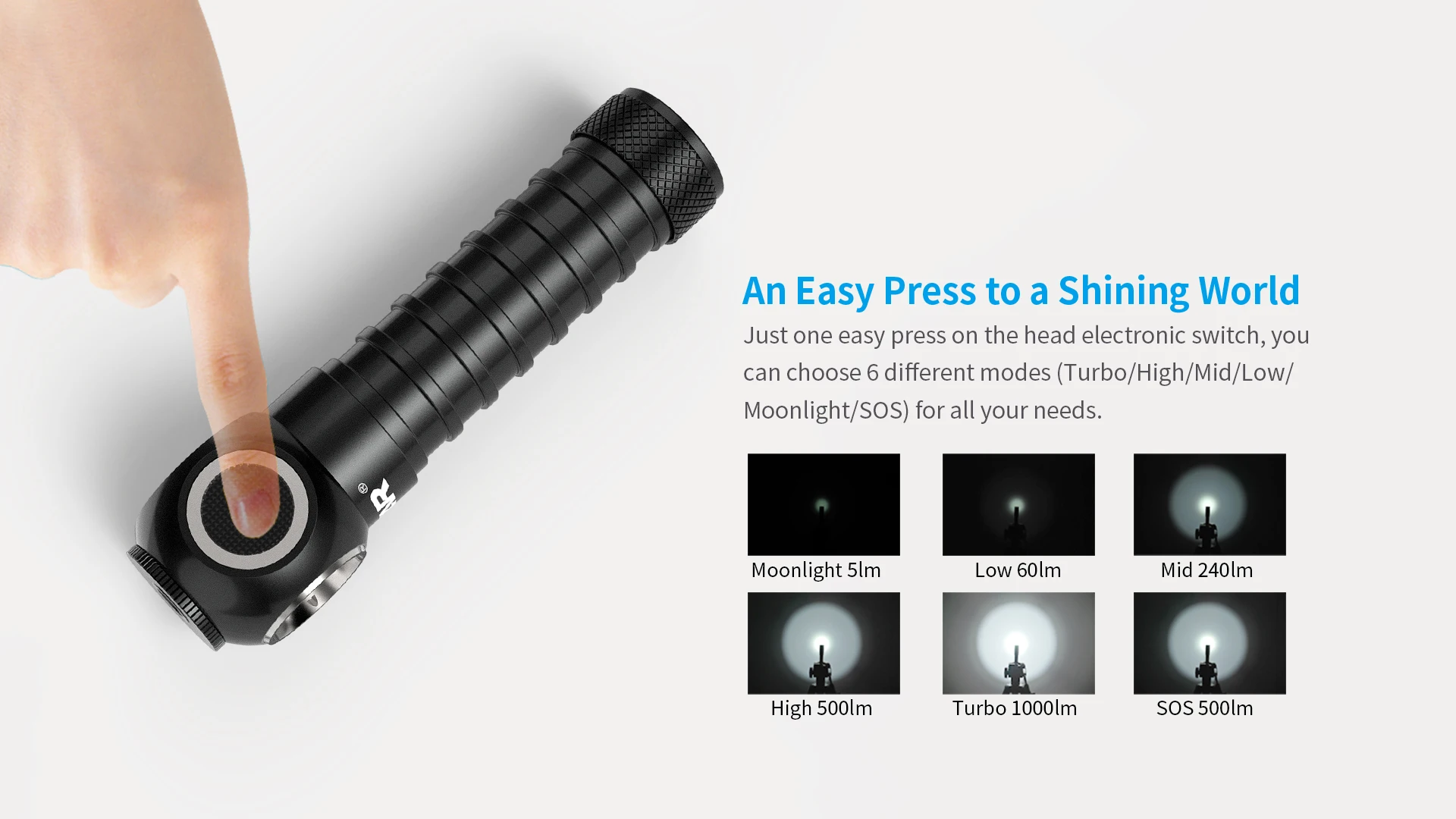 • Utilizing CREE-XP-L V6 LED boasts 1000lm true lumens to give you a bright world.
