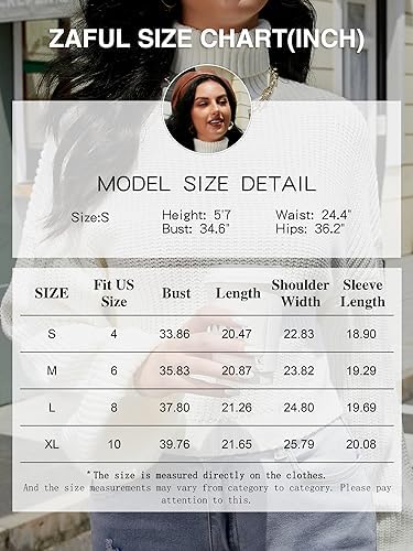 ZAFUL Women’s Cropped Turtleneck Sweater Lantern Sleeve Ribbed Knit Pullover Sw …