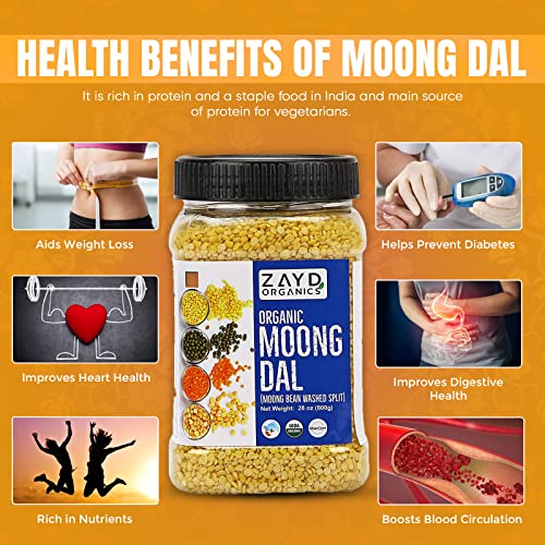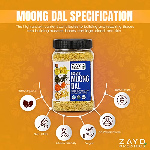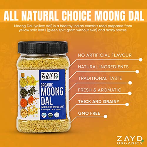 Zayd Organics Moong Dal, Split Mung Beans, USDA Organic, 1.75lbs (800g)