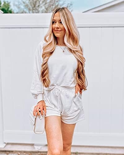 The set includes a crop top that features an crew neck, long bubble sleeve, super soft fabric, and an oversized fit with crop design. Along with the top, our shorts feature a comfy tie waistband as well as a relaxed fit!